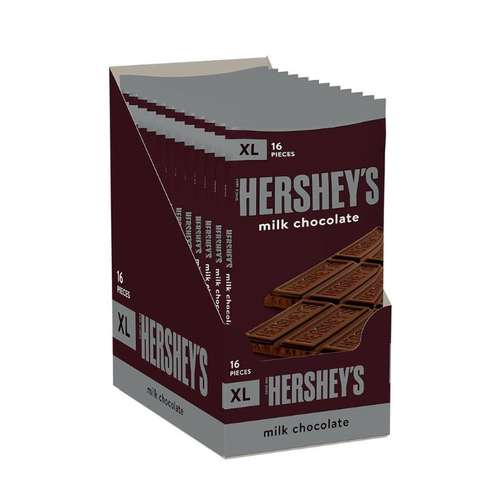 • Contains twelve (12) 4.4-ounce, 16-piece HERSHEY’S Milk Chocolate XL Candy Bars in a bulk box.